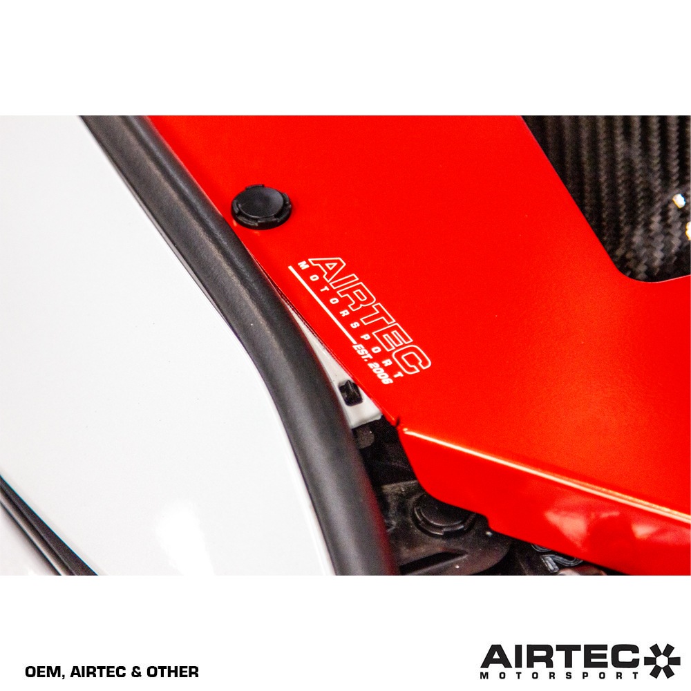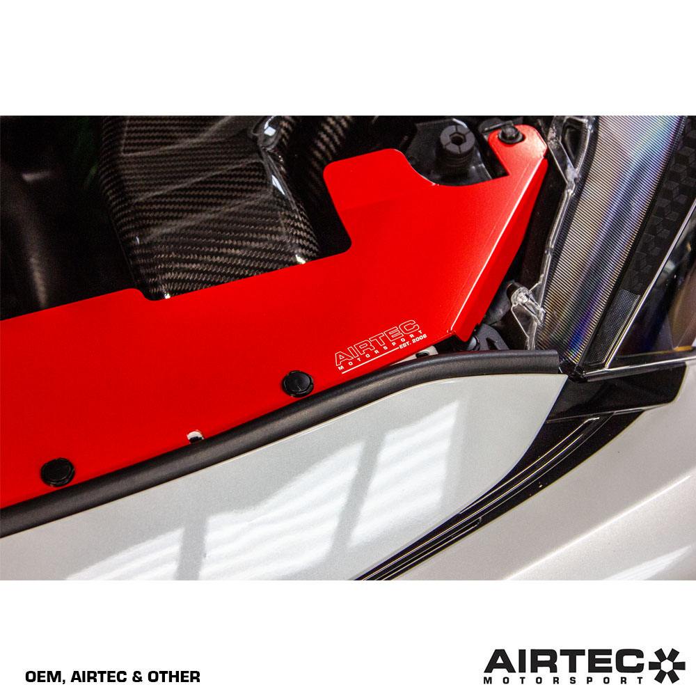 Available in a choice of red or black powder-coated finish, the plate also comes in two fitments to suit OEM/AIRTEC Motorsport air intakes OR to fit an Eventuri air intake.