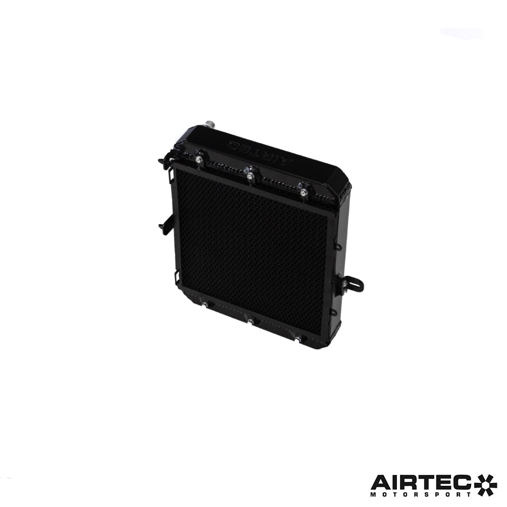 AIRTEC Motorsport’s solution to improving the original set up is utilise the available space behind the front bumper and develop a direct replacement radiator that’s wider, taller and thicker. This means capacity is increased by a 39% over standard, whilst frontal area is increased by 17% to help cool the extra capacity.