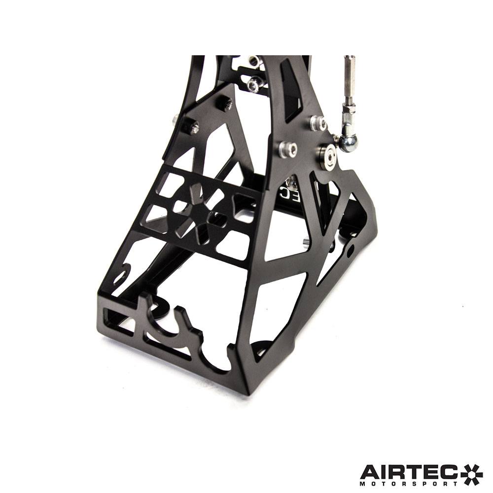 The shifter is constructed in two parts; the base and tower of which are made from laser-cut 3mm 304-grade stainless-steel, finished in powder coated black, to ensure the shifter remains completely rigid and will not flex during hard use. The top mechanism section, gear lever and gear knob are CNC-machined from high-tensile aerospace 7075-grade aluminium, finished in anodised black, whilst the shifters are assembled by hand at AIRTEC Motorsport HQ.