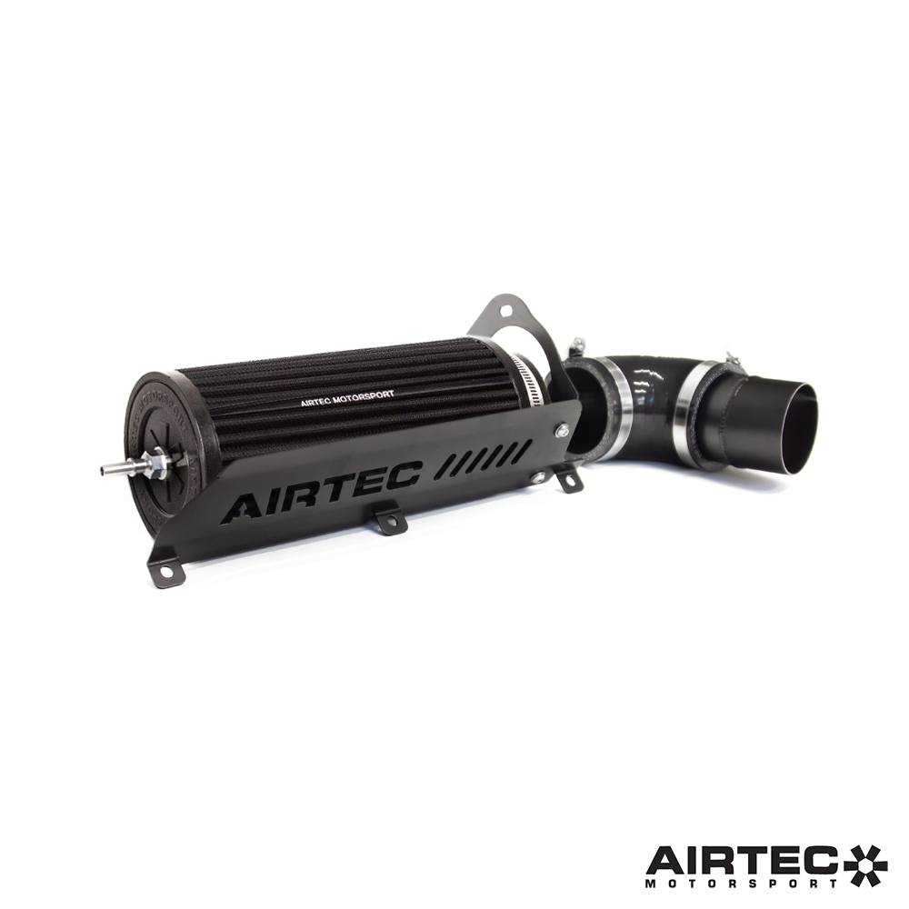 The kit features a huge, free-flowing cotton air filter, replacement intake pipe, Pro Hoses silicone connector and laser cut mounting bracket all finished in a high quality and long lasting powder coat black finish. To ensure the new air filter suffers less with heat soak issues from the confines of the engine bay, the laser cut shield complete with AIRTEC logo provides a barrier from the heat of the engine.